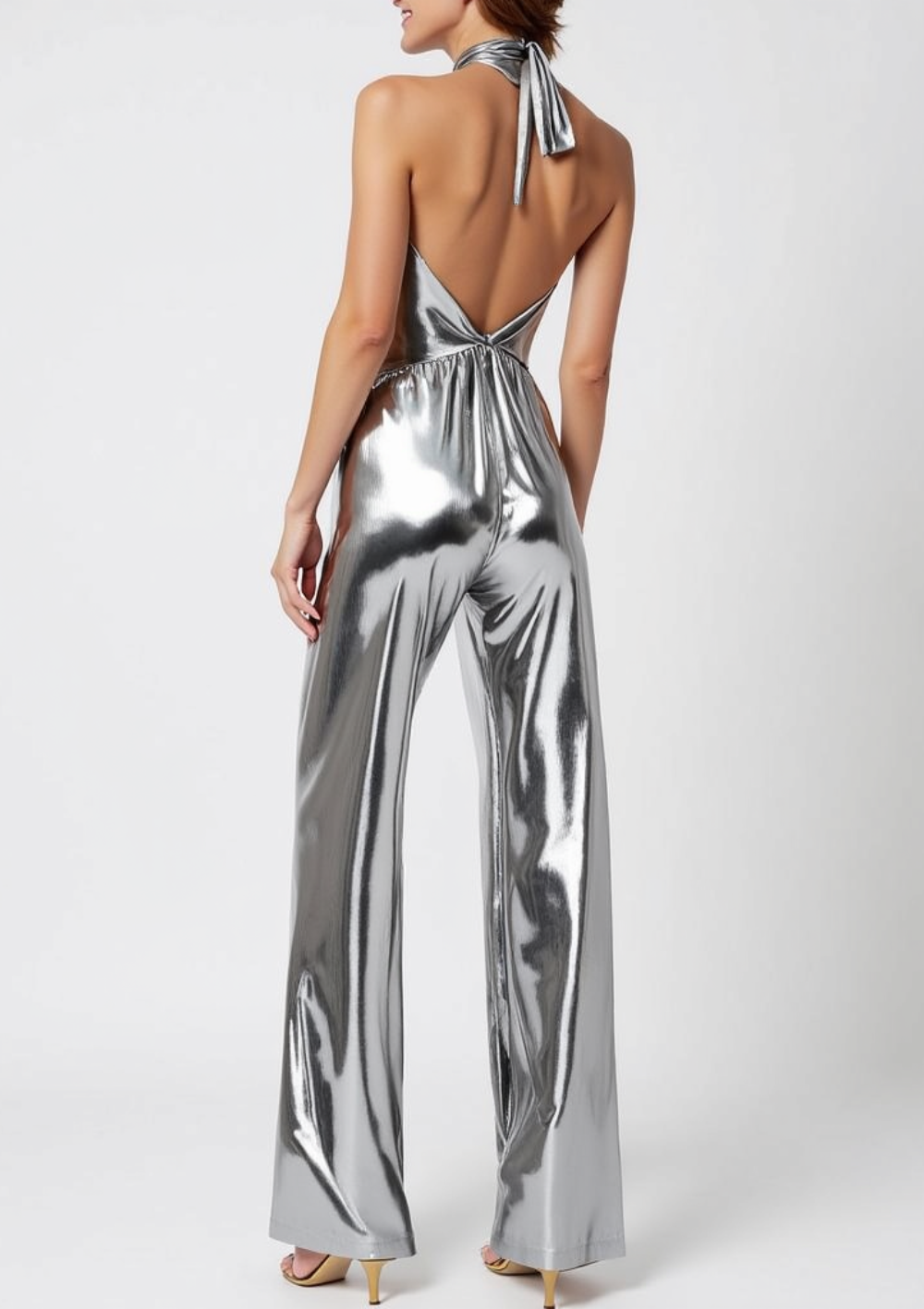 This black jumpsuit has a drop neck and semi-covered back design, allowing you to wear a bra comfortably. The straight boot cut pants enhance the look of your legs. The fabrich is very light and easy to wash.